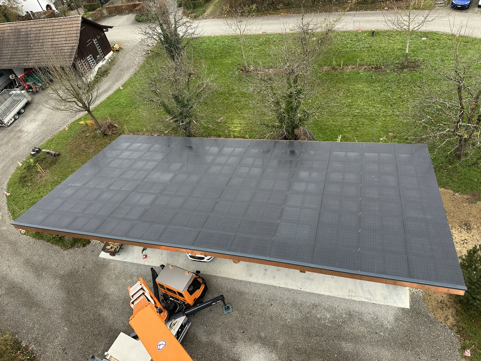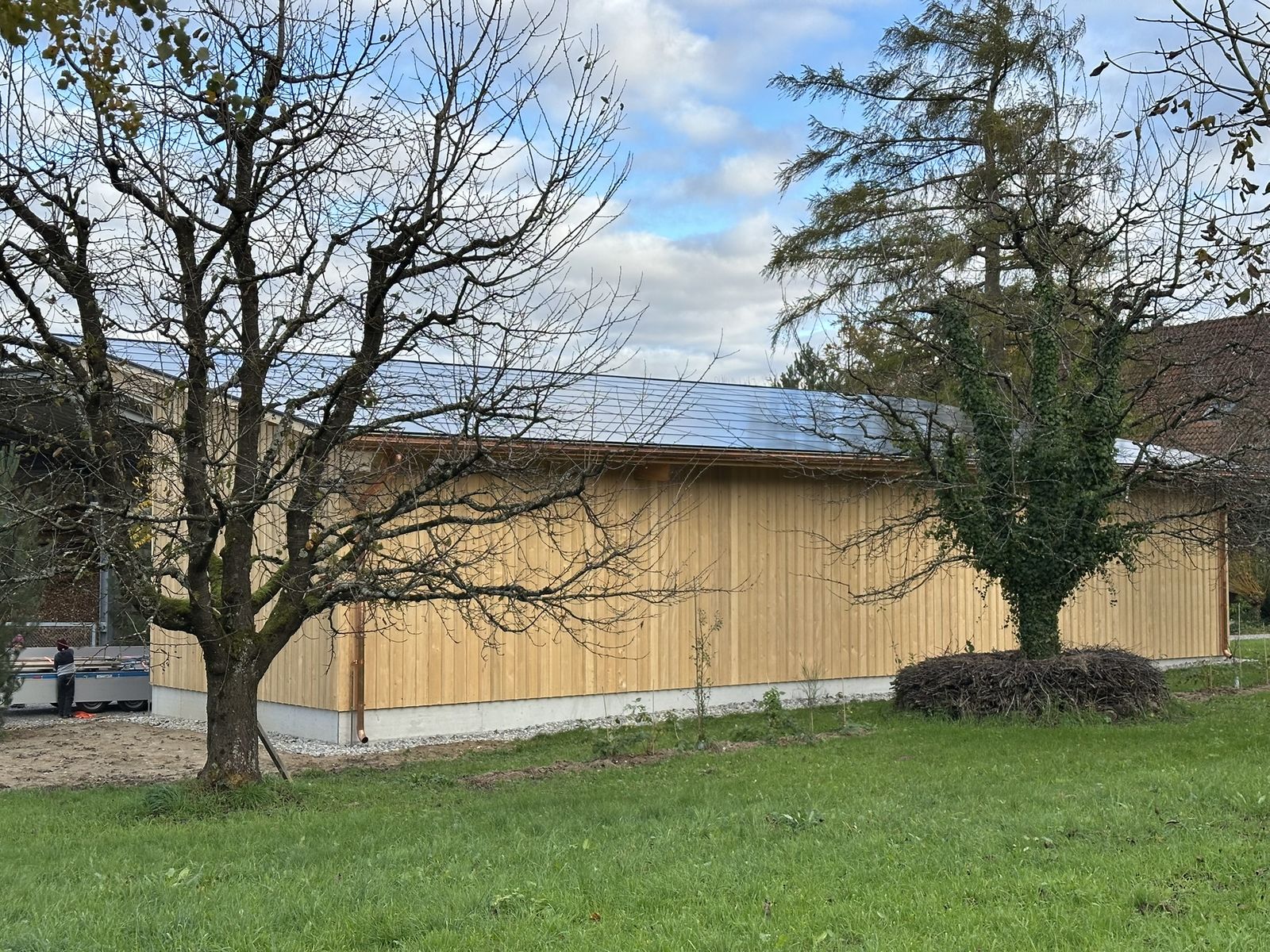 Indach-Photovoltaik-System auf Einstellhalle, Rüdlingen